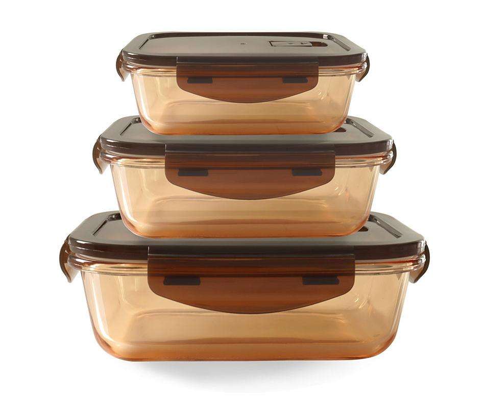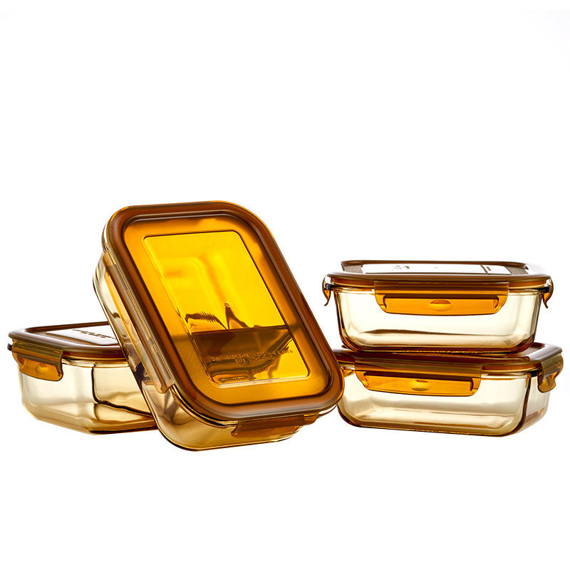 Amberfarbener Glas-Nahrungsmittelbehälter-Set Hoch Borosilikat-Glas-Nahrungsmittelwärmer-Behälter