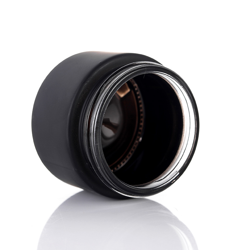 5g-100g barattolo di crema in vetro nero opaco dritto con cappuccio in legno rotondo