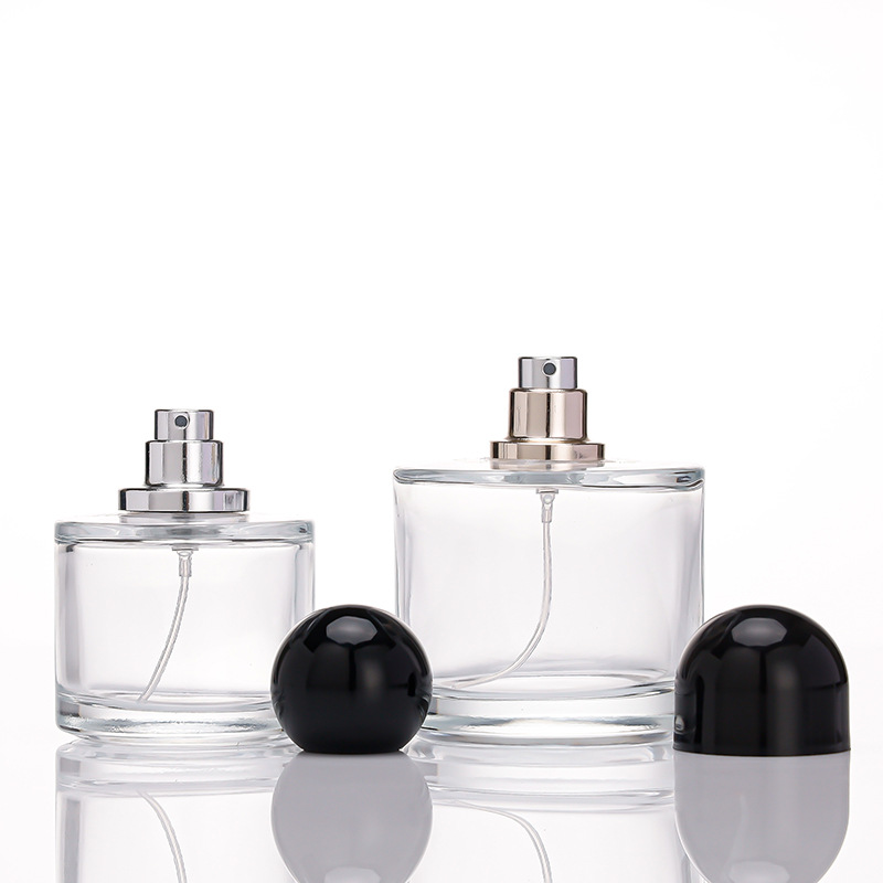 30ml 50ml 100ml clear round perfume bottles with black lid