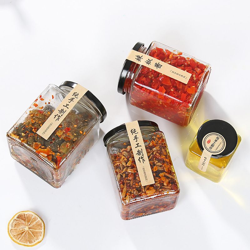 50ml-730ml Square Glass Storage Jar with Screw Lid